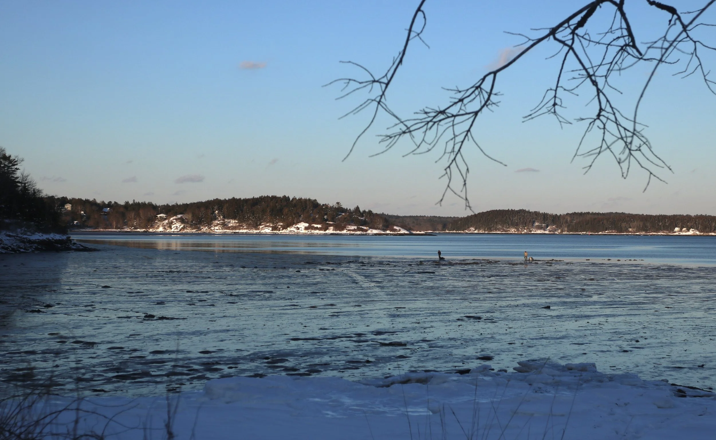 Somebody looking for the coastal quiet of Maine moves to Phippsburg, maybe for a well-earned retirement or vacation from the draining urban buzz. (I just went outside in the snowy moonlight and all I heard was an owl. Which is to say, I get it – the Midcoast is sublime! I’d want to settle in here too.) They buy a piece of waterfront land. The sunrises are stupendous, that eastern bay a bowl of fuschia some days, foamy steel another. The land itself feels wild, craggy and spruce-snarled, a little dangerous–just enough–and with different, more interesting tensions than are found in the familiar exactitude of city blocks and office stairs. Life slows down here, gaining a sense of welcome privacy. But then, at some draining tide, high noon just slipping over to longer shadows, this newcomer sees a stranger passing over the edge of their property.