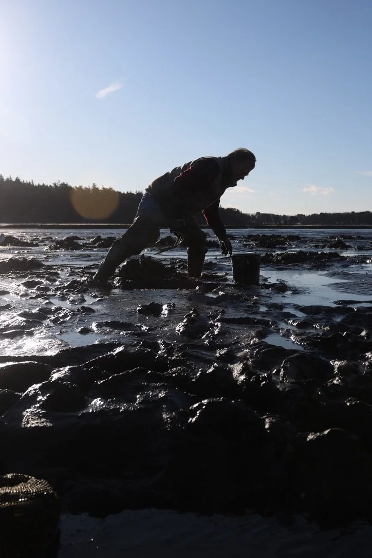 I SHOWED UP to Phippsburg not knowing much about mudflats. Beyond a culinary appreciation for shellfish, I hadn’t given them much thought. This is unlike me. Usually, and especially when it comes to seafood, I want to know all about supply chains. How far have these mussels travelled before they landed in this brothy bowl? What savvy hands harvested, processed, packaged and shipped this cod cheek? What was the rex sole’s life like, forty fathoms down? And is the dollar amount I’m paying for this meal equal to the toll its removal had on its ecosystem or the labor it takes to turn a wild thing into an edible morsel?