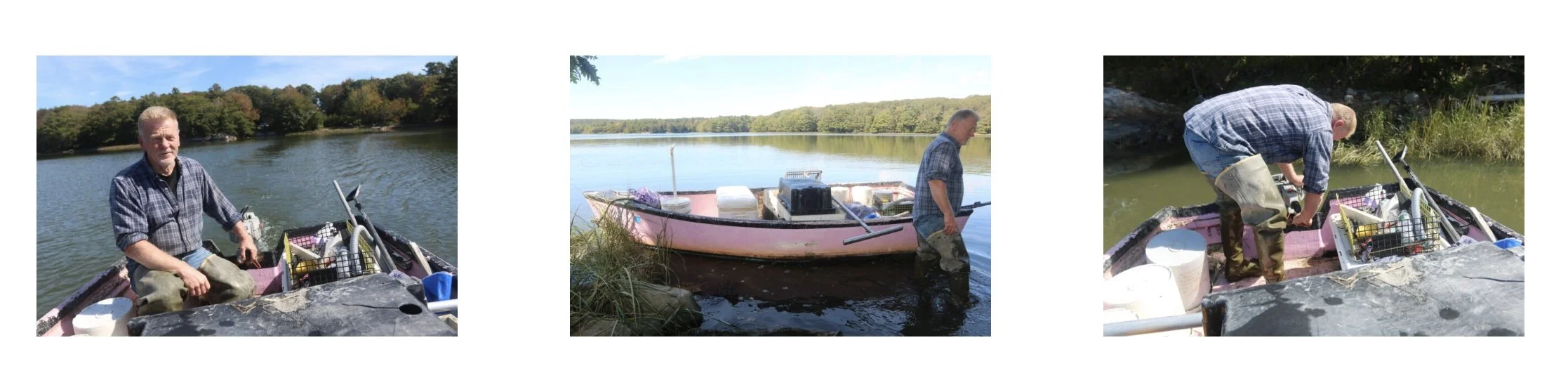 It’s a foggy morning in Phippsburg. We’re standing down near his pink skiff on Spirit Pond, where he’s tending an experimental oyster grow. On the other side of the road, in Atkin’s Bay, he harvests clams. Terry has sun spokes growing out of his eye corners, the deep kind of the people who spend their lives between water and sky. Every time Terry starts talking, I hear a wide river of knowledge pour out of him to fill the air between us. When he talks, he teaches, describing this Maine coast, its people, systems, and ecology. I absorb what I can.